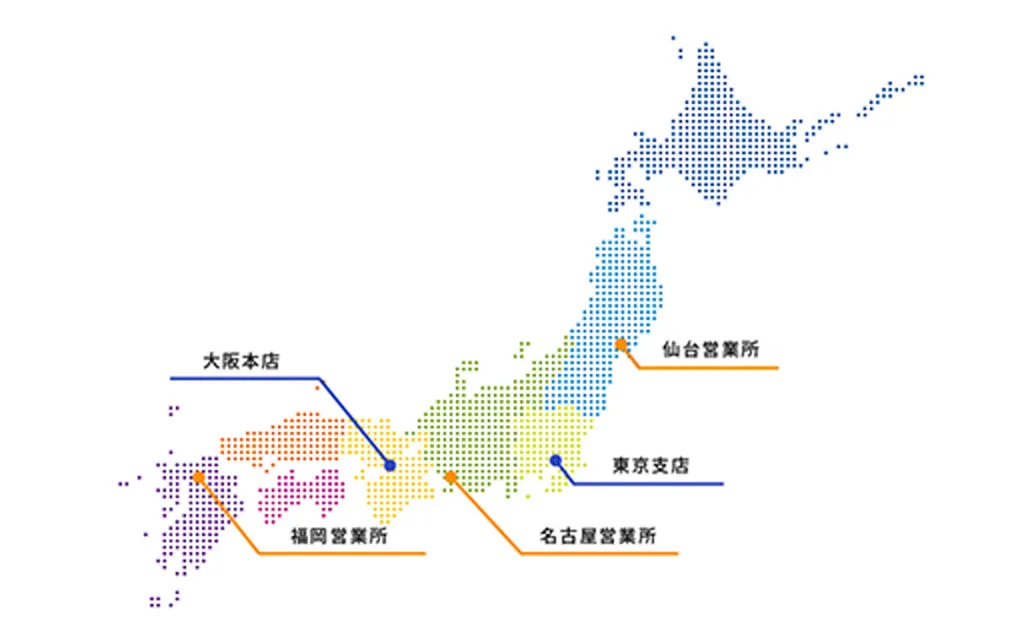 日本全国のお客様の対応ができるよう、全国に5つの営業所を設置。